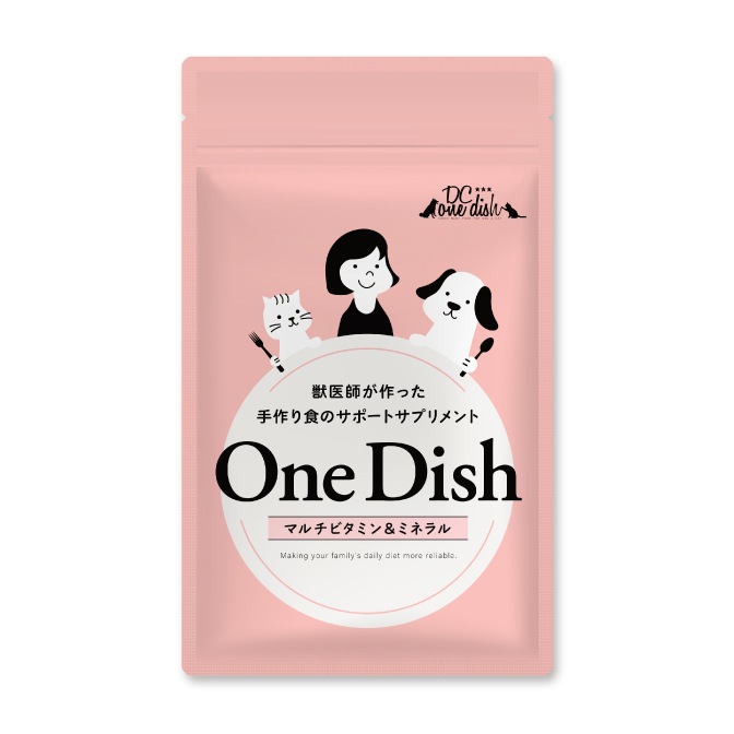 | 目安: | 手づくり食100kcalに対して1.0g ※DC one dish以外のレシピで使用する際はご自身で栄養組成を計算してください。 |