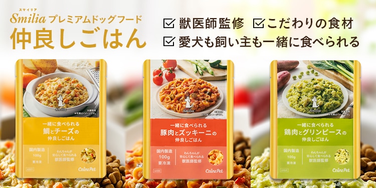 株式会社カインズ様のわんちゃんも人も食べられる冷凍食品「スマイリア 一緒に食べられる仲良しごはん」を設計・監修させていただきました。
